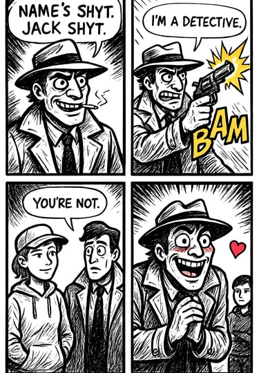 Meet Jack Shyt, our animated detective bringing laughter and insight with every outrageous story and crime-solving adventure!